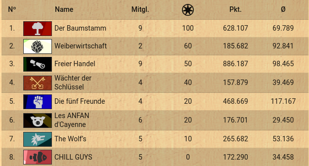 Schließlich haben die fünf Freunde dann doch noch ihre Meister gefunden: zusammen mit The Wolf’s konnte Der Baumstamm diesen Einhalt gebieten und ihre Stadt halten, die schlussendlich auch als Siegerstadt diese Runde beschließen konnte.
